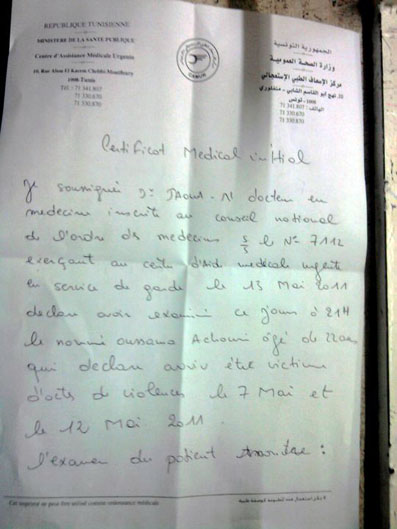 Mais peu après avoir été relâché, il cherche à prouver les sévices subis lors de sa mise à l’ombre. La plupart des médecins contactés refusent, mais un plus courageux que ses confrères accepte de lui délivrer un certificat, détaillant les cicatrices de son passage à tabac, doublé des traces d’un viol.